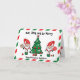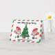 Cute Navidades pickleball tarjeta doblada con Santa jugando pickleball sobre fondo blanco. Come, bebe y sé alegre