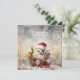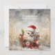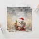 La manera más apropiada de enviar saludos de Navidad a tus amigos y familia. Una linda chica vestida de rojo tomando una taza de té en un fondo dorado y gris de madera.