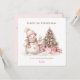 Navidades con una adorable muñeca de nieve de color rosa para bebés y niñas. Personaliza fácilmente esta tarjeta de Navidades con tu propio texto. Esta tarjeta es para un texto largo - Kate Eden Art.