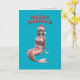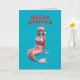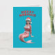 Una sirena en franjas de Navidad lleva puesto un sombrero de Santa.