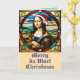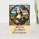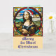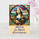 Mona Lisa vistiendo un sombrero de Santa se hace en vidrios manchados.