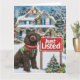Esta tarjeta de Navidades cómicos presenta a un perro encantador en un suéter de vacaciones, parado al lado de un cartel festivo "Just Listed" frente a una casa cubierta de nieve. Perfecto para agentes inmobiliarios, esta tarjeta humorística le da un toque divertido a sus saludos de vacaciones, combinando el amor de los perros con el espíritu de la temporada. Ideal para los inquilinos que buscan esparcir alegría mientras exhiben su profesión, esta tarjeta seguramente traerá sonrisas a clientes y colegas por igual.