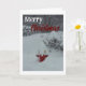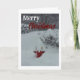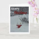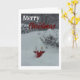 La nieve fresca en una boca de incendios roja y amarilla hace un gracioso gnomo de nieve. Personalizar el texto dentro de la tarjeta al saludo de tus Navidades favoritos.