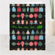 Navidades con elfos lindos, Santa en su trineo siendo jalada por renos junto con adornos y regalos y árboles de Navidad