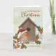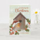 ¿Se mudó a un nuevo hogar este año? Conozca a sus amigos y familiares con esta tarjeta de Navidades que presenta un ladrón festivo en un sombrero de Santa colgado en su acogedor pajar, rodeado de hojaldre y copos de nieve. Añade tu nueva dirección en el interior de la tarjeta.