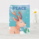 Navidades felices con ciervos adorables en la nieve, tarjetas de felicitación de papel. PAZ escrita en la portada. Arte, imagen y verso copyright © Shoaff Ballanger Studios, 2023.
