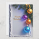 Diseño de Navidades festivos con un marco ornamentado, baubles coloridos y ramas siempre verdes. Perfecto para decoraciones de temporada, invitaciones de vacaciones o saludos festivos.