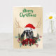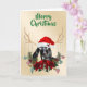 Cabra cutúa nubia con su sombrero de Papá Noel y corderos adornados con adornos estriados de Navidad, rodeados por una corona de flores de pino rojo, poinsettias rojas, vegetación y un gran arco rojo. - arte original ©goatlady GetYerGoat™ - esta es una pintura de la cabra de Sue Weaver - Chuck - es adorable