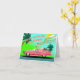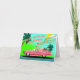 Una tarjeta de saludo de Navidades coloridos y tropicales con un flamingo conduciendo un auto rosa lleno de festividades de Navidades festivos. Regalos, coronas, palmeras, luces de colores y un arco están dentro o en el auto. El flamingo lleva una corona alrededor de su cuello y una corona de Navidades con cuerdas de estrellas de oro y luces de colores que regresan de ella mientras desciende por el camino. Fa la la la, Flajingle escrito en la portada. Diseño luminoso y colorido. Personalizar el interior como quieras. Arte, imagen y verso copyright © Shoaff Ballanger Studios, 2022.