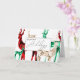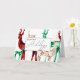 Una tarjeta de vacaciones única y elegante, diseñada con reno de cristal de color acuático pintado a mano en tres colores de piedra gemela: esmeralda, rubí y diamante. El interior contiene un cálido mensaje de vacaciones que puede dejar tal como está, editar a su gusto o borrar para una tarjeta en blanco.