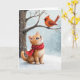 Tarjeta Navidades Ginger Kitty mirando al cardenal