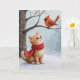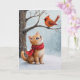 Tarjeta Navidades Ginger Kitty mirando al cardenal