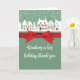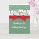 Las casas bordean la calle en blanco con un fondo verde claro. La tarjeta y el pensamiento están envueltos en una cinta roja de colores brillantes. Tarjeta perfecta para completar la temporada de Navidades con esta encantadora tarjeta de agradecimiento por el regalo. Esta tarjeta no viene con una cinta real y se imprime sin formato.