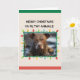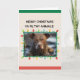 Esta graciosa tarjeta de Navidades muestra un perro marrón cubierto de barro con las famosas palabras "Feliz Navidad Ya Filthy Animals". El borde de la imagen del perro también está iluminado con luces Navidades de varios colores que le dan un aire cristiano. El interior de la tarjeta puede ser personalizado con su nombre y mensaje. Actualmente, el poema del mensaje dice "Escuchamos las campanas el Día del Navidad, tocan los viejos villancicos familiares. Noche silenciosa y cubierta los vestíbulos. Manda paz en la tierra, buena voluntad a todos.