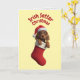 Un cachorro de Setter irlandés está sacando la cabeza de un Navidad que se abastece.