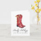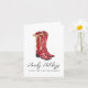 Estas tarjetas de navidad muestran un retrato acuarela de un par de botas de vaquera rojas con el título "feriados de boga".