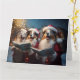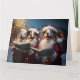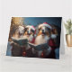 En esta fascinante obra de arte digital, un grupo de pastores australianos se convierte en el centro del escenario rodeado por la escena de un Navidad festivo.