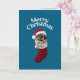 Un pekingés lleva puesto un sombrero de Papá Noel y saca a un pekinés con un pelo de Sanra y saca a los Navidades en caldo.