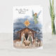 Con una hermosa y tradicional acuarela religiosa de San José y María, la Madre Bendita, adorando al Niño Jesús en el pesebre. Se pueden modificar todo el texto y las fuentes.