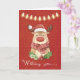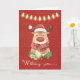 Este lindo reno lleva un gorra y una bufanda y está rodeado por un fondo de polka punto rojo de color crema. Una cadena de luces está por encima. ¡Desee a su familia y amigos los alegres mejores Navidades de la historia!