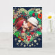 Tarjeta de Navidades personalizada. flores de color rojo bonito, azul oscuro y beige llamativo arte folclórico estilo corazón floral. Agregue una imagen de usted y su compañero en el área de personalización.