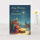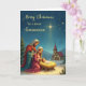 Una tarjeta de Navidades reverentes diseñada especialmente para un seminario sagrado. La obra de arte incluye la Natividad con María, José y el Niño Cristo bajo la estrella de los radiantes Navidades, con una pequeña iglesia en el fondo decorada para la temporada. Una manera sincera de honrar y alentar a los seminaristas mientras continúan su camino de fe y vocación.