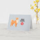 Saludos de vacaciones de tu raza de perro favorita. La tarjeta de Navidades doblados muestra al perro Inu shiba con texto de "Feliz Navidad" y adorno de Navidad rojo.