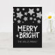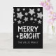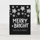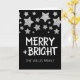 Navidades Sparkle Stars Merry brillante Tarjeta negra de nombre familiar. Sparkly Navidades tarjeta de saludo de invierno de vacaciones con texto personalizado Merry y Bright. Un hermoso purpurina gris blanco y negro destella el patrón de las estrellas en la tarjeta personalizado. ¡Foto de chispas!