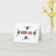 Tarjeta de Navidades suecos con diseño escandinavo tradicional en verde y mensaje de Navidad en sueco (Dios Jul, Navidades felices en sueco). El mensaje dentro dice 'Dios Jul'.