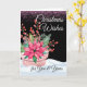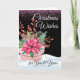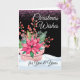 Personalizar el texto de la portada de esta tarjeta de bienvenida de Navidades con una disposición floral y verde en tonos rosa y verde. Poinsettia rosa, bayas rosas, nieve rosa y verduras completan este estilo floral nocturno. Arte, imagen y verso copyright © Shoaff Ballanger Studios, 2023.