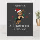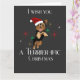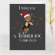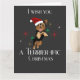 Un juego de palabras de Navidades festivos con un lindo terrero en un sombrero de Santa con brillantes de colores y la frase ¡te deseo Navidades terribles!