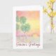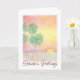 Navidades Tropical Beach con tarjeta de bienvenida plegada de vacaciones, con un colorido diseño de una obra de arte dibujada a mano de una puesta de sol de la isla. Con grabado de personalizable, puede agregar su propio texto. Una tarjeta divertida para enviar a sus seres queridos de lejos y cerca.
