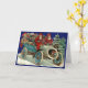 ¿Quién dice que los victorianos estaban desfasados? Claramente, Santa se ha metido en el espíritu de los tiempos actualizando su mecanismo de entrega al nuevo carruaje sin caballos (o sin renos) de finales del siglo. Este acogedor saludo se basa en una cocina de principios de siglo. (No estoy muy seguro de por qué hay DOS Papá Noel en el auto; ¡tal vez sintió la necesidad de una copia para esta nueva tecnología!)