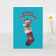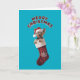 Una yorqui con un sombrero de Santa está sacando a un Navidad en caldo.