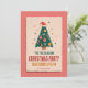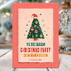 Una fantástica tarjeta fiesta de Navidades con un árbol festivo decorado con adornos, caramelos y un sombrero de Santa, ideal para celebrar la temporada de fiestas.