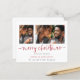 Tarjeta navideña de nuevo 2 Photo Merry.Precio económico de 5,5" x 8,5" tarjeta FLAT para sus saludos festivos en un brillante stock de tarjeta SEMI GLOSS de 110 lb (similar al grosor de una postal) NOTA: El sobre suministrado con esta tarjeta es mayor que la tarjeta de 6,75" x 9". Añade dos de tus fotos favoritas a tus deseos de vacaciones y guión elegante para el encabezado principal. El resto del texto se puede personalizar fácilmente y reemplazar las fotos de muestra por las suyas. Los colores del texto y del fondo también se pueden cambiar a través de la opción personalizar.