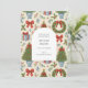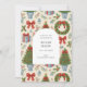 Envíe encantadores deseos con esta tarjeta de vacaciones de milenio, perfecta para ella. Esta tarjeta de invierno, con un elegante patrón acuático con detalles florales azules, rojos, verdes y rosas, pinos, pinos y bayas, estilo de chinoiserie vintage, un arco dulce, toques de color marrón y tipografía atemporal, aporta una belleza muy agradable a sus saludos de vacaciones.