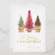 Una tarjeta de vacaciones mínima y elegante, perfecta para enviar saludos de vacaciones a la familia y amigos. Con acuarelas de Navidad en un marco de Relieve metalizado dorado con 'Feliz Navidad' en Relieve metalizado dorado. Personalice el nombre y el año de su familia, agregue su propio mensaje para crear una tarjeta especial que sus destinatarios apreciarán.