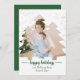 Esta tarjeta navideña de vacaciones fotográficas recortadas por Anton Design Co incluye una encantadora foto tuya y de tu familia detrás de un corte de tres árboles de Navidad de color pastel de agua.