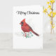 Feliz Navidad con pájaro cardenal de acuarela pintada. Arte de Jenn Steffen, el Emporio de Jenn.