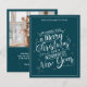 Elegante tarjeta fotográfica Verde azulada y blanca de Feliz Navidad y Feliz Año Nuevo. Envíe sus cálidos deseos de vacaciones con esta elegante y Verde azulada tarjeta de fotos navideña. El frente presenta una tipografía festiva con letras a mano con acentos dorados y un delgado borde blanco. La parte trasera incluye espacio para la foto de tu familia, saludo personalizado y nombre. Perfecto para unas vacaciones modernas y atemporales. ¡Una hermosa manera de desear a los seres queridos una Feliz Navidad y un Maravilloso Año Nuevo! Para cualquier personalización adicional , no dude en ponerse en contacto conmigo en mypaperlove2021@gmail.com