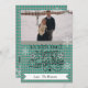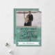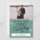 Texto negro que dice "Te deseamos una Feliz Navidad" delante y "¡y un Feliz Año Nuevo!" detrás con cuadrados verde azulados de fondo gris, copos blancos de nieve y ciervo de silueta, y áreas donde puedes agregar tu nombre familiar y foto en una tarjeta de felicitación de vacaciones para Navidades ¡seguro que quieres mandar a familia y amigos!