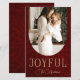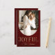 Tarjeta navideña de fotos alegre para el arco botánico moderno de oro rojo de presupuesto
