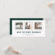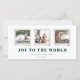 Los sentimientos alegres son una instantánea vintage, tarjeta de vacaciones. Características, 3 fotos enmarcadas, dos líneas de texto de plantilla para su saludo, nombre y año, texto de color verde rústico de moda y respaldo de patrón de nieve a juego.