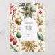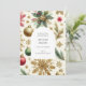 Envíe cálidos y elegantes deseos con esta tarjeta de vacaciones de lujo roja, verde y dorada. Con copos de nieve dorados de bonito, elementos florales acuosos de acuarela, detalles de pino y un moderno patrón geométrico abstracto con tipografía elegante, este sofisticado diseño invernal aporta un encanto intemporal a sus saludos festivos.
