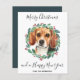 Tarjeta navideña de merry de perro beagle con pres