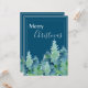 Bonita carta moderna con pinos acuáticos pintados a mano. "Feliz Navidad" saludo para tu familia y amigos.