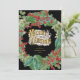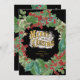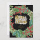 Un diseño moderno de tarjetas de Navidades de escritura de caligrafía en oro negro que se puede personalizar con el texto. El diseño exhibe una cosecha dorada "Feliz Navidad" con Navidades botánicos de corona. Un diseño rústico y moderno de Navidad ideal para cualquier persona.