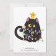 Añada un toque personal a sus saludos de vacaciones con esta tarjeta de Navidades de personalizable con un gatito adorable envuelto en coloridas luces de vacaciones y coronado con una estrella festiva. Personalice el texto para incluir su nombre, apellido o un mensaje especial, y cree una tarjeta única para compartir sus cálidos deseos de vacaciones con sus seres queridos esta temporada!