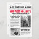 Esta fantástica tarjeta fotográfica de vacaciones incluye un tema periodístico que personalizar con titulares divertidos, texto de la historia y fotos. En la parte superior, el nombre del periódico es personalizado con su nombre y el titular principal / saludo dice "FESTIVIDADES MÁS FELICES". En la parte de atrás hay una historia más y una foto horizontal. Simplemente reemplaza las fotos temporales con tus fotos y cambia el texto - ¡es muy fácil! Este es un diseño maravilloso para aquellos que quieren destacar ciertos eventos o hitos del año - perfecto para familias!!